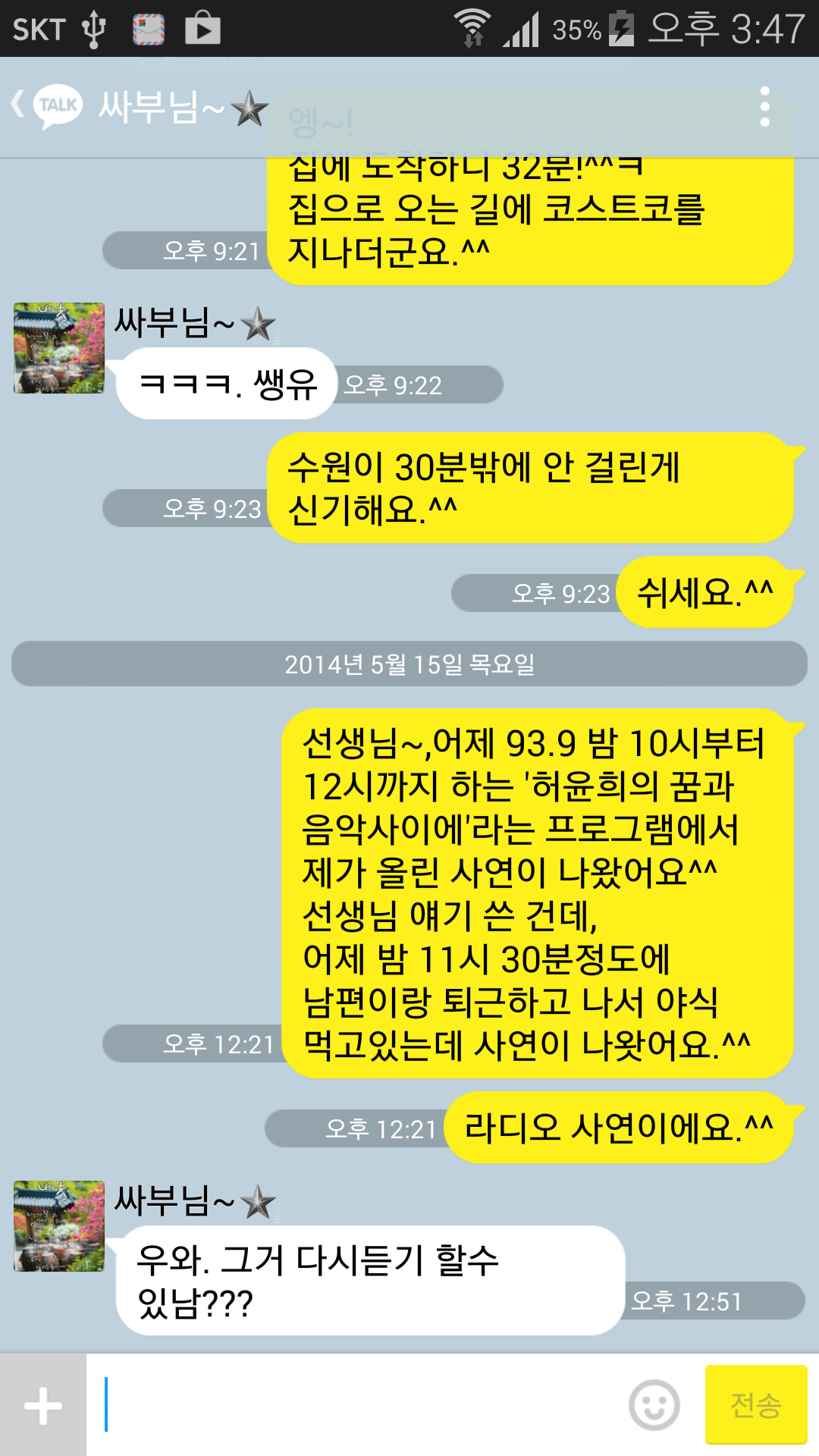 어제 선생님께서 방송을 못 들으셨다며 아쉬워하시며 저에게