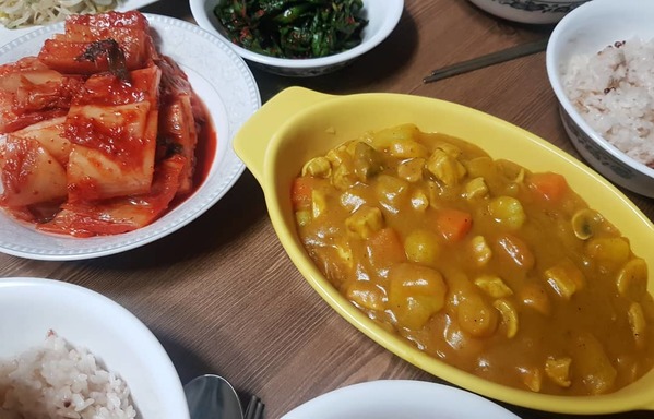 역시 카레엔 신김치라며 어릴적 생각이 난다고 하네요