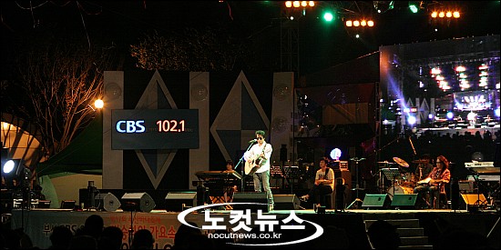 '나는 가수다'에서 폭발적인 가창력으로 널리 알려진 가수 적우씨는 '작은새'와 '사람이 꽃보다아름다워' , '아름다운 강산'을 잇따라 열창하며 축제장의 열기를 뜨겁게 달궜다.