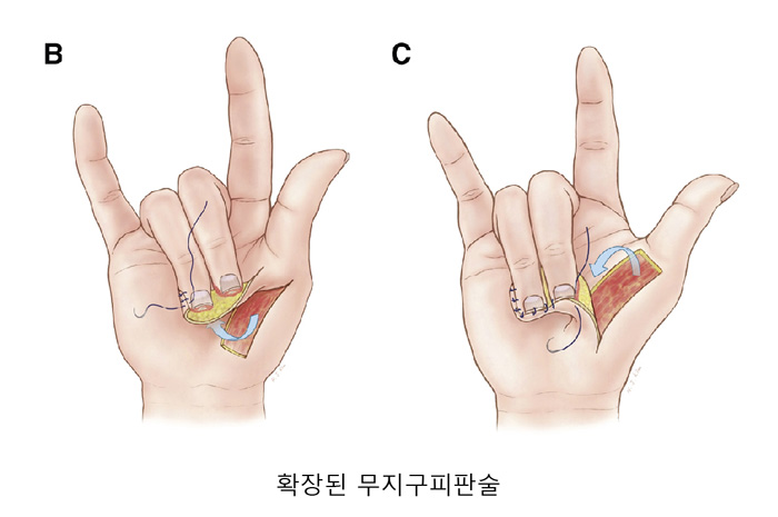 무지구 피판술 - 잘려나간 손가락을 손바닥에 접합시켜 잘린 손가락의 피부재생을