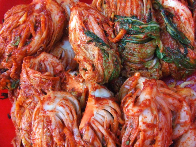 처음엔 조금낯설었지만...음악과 ...노란 배추잎과 생새우가 듬뿍들어간 김치속..