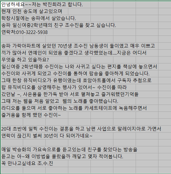 ▼ 이전글 : (친구찾기) 너무 보고 싶은 친구...