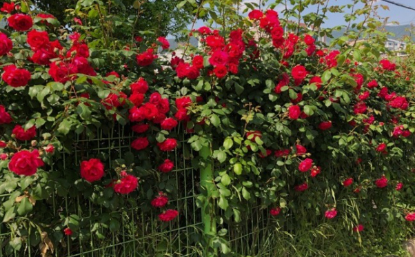 흐드러지게 피어있는 장미꽃 넝쿨이
