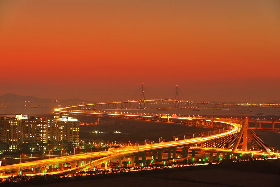 송도 노을과 인천대교 야경을 사진 보냈으니 점수좀,,
