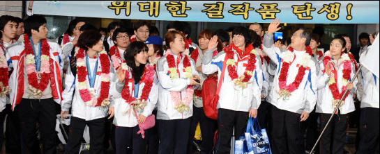 금의환향한 동계올림픽 영웅들을 환영하며,