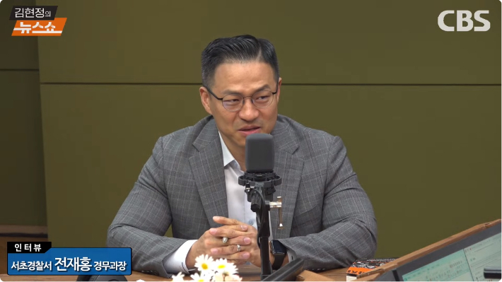 ◇ 김현정> 여기까지 오늘 말씀 감사합니다. 서초경찰서 경무과장이십니다. 전재홍 과장 만나봤습니다.