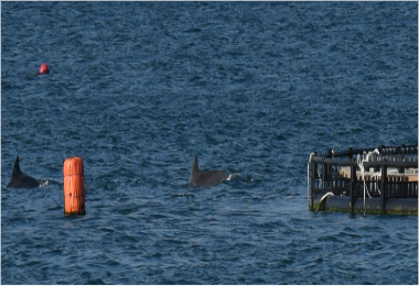 ◆ 손호선> 지금까지 3번 정도 야생 돌고래 무리들이 가두리 근처에 나타났었습니다. 지난 5월 27일, 30일 그리고 6월 6일 나타났었는데요. 특히, 지난 6월 6일에는 한 30마리 정도가 가두리 근처에 와서 굉장히 크게 점프 하면서 큰 소리를 냈어요. 돌고래들이 이런 큰 소리를 내는 것 자체가, 자기가 있는 걸 알리고 소통하는 행동이라고 알려져 있거든요.