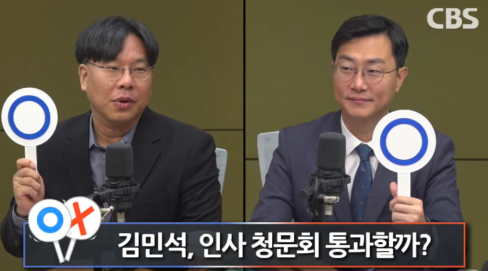 ◇ 김현정> 2번 문제 다음 주 화, 수 그러니까 24, 25일 이틀에 걸쳐서 진행되는 김민석 국무총리 후보자 인사청문회. 그런데 인사청문회가 열리기도 전에 여러 가지 의혹과 논란들이 이어지고 있습니다. 국민의힘은 국민 검증에서 이미 탈락했다. 말하고 있고요. 민주당에선 후보자 흠집 내기가 도를 넘었다. 비판하고 있는데요. 과연 김민석 후보자 인사청문회를 통과해서 임명이 될까요? 낙마할까요? OX로 들어주십시오. 두 분 다 된다, 임명된다. 들어주셨어요.