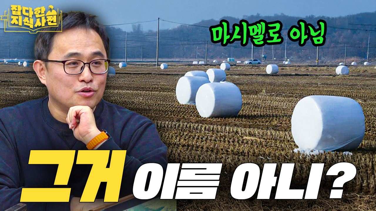 추수 끝난 논 위에 있는 거대한 마시멜로