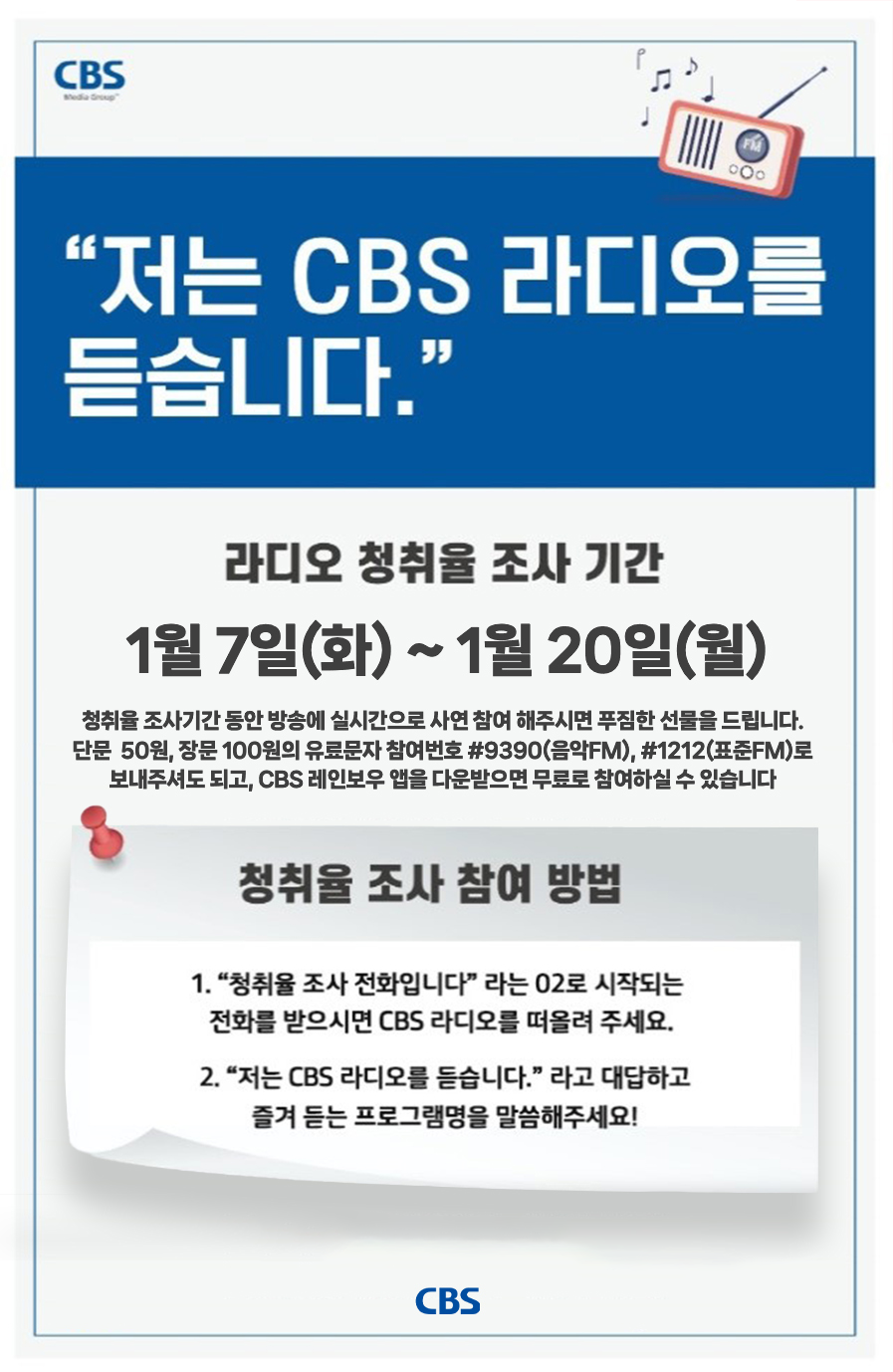 라디오 청취율 조사기간 입니다 : 1/7(화)~1/20(월)