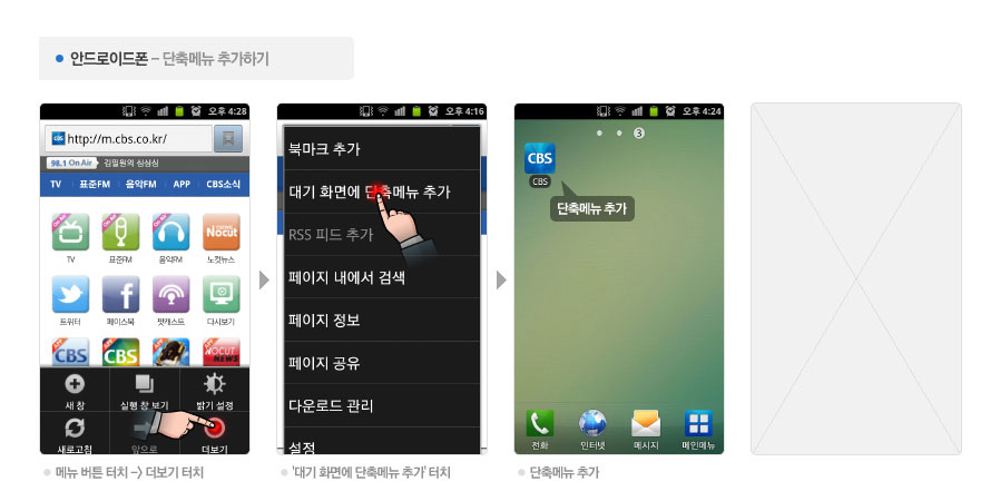 스마트폰에서 더 빠르게, CBS 모바일웹을 내 폰안에!