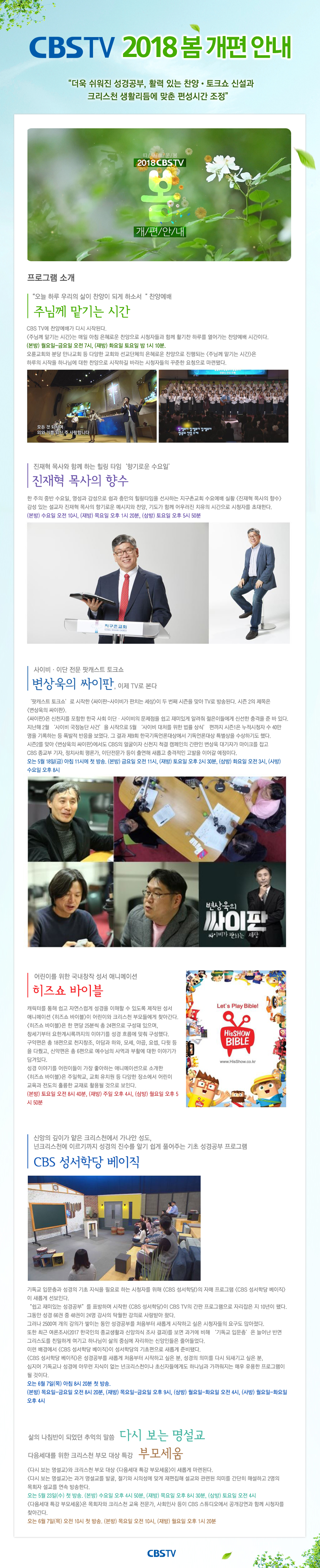 CBSTV 2018 봄 개편 안내