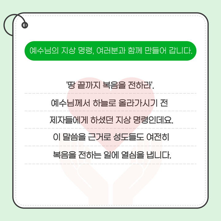 땅 끝까지 복음을 전하라는 예수님의 지상명령을